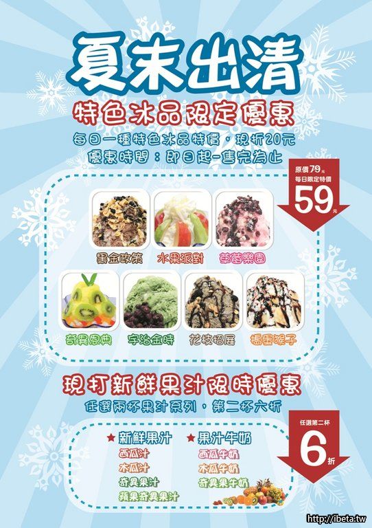 夏末出清,經典冰品下殺 49 元,特色冰品每日單品項優惠 59 元。