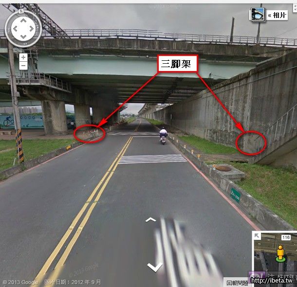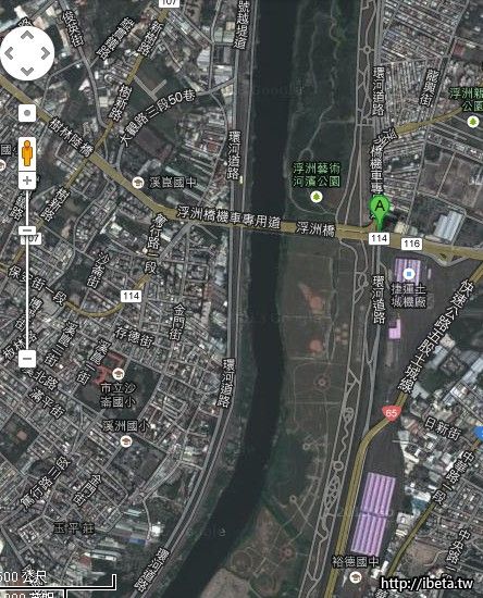 浮洲橋下機車道(警車躲在橋墩旁)