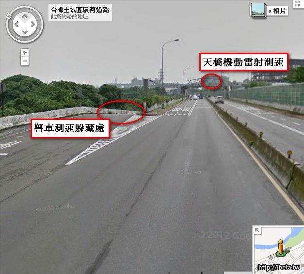 它會不定期擺出來,連續好幾個月都沒出來了,其實大家走這條,只要是技術族的,車速應該是...,但是回三峽的路上,只要看到橋,一定要慢下來仔細看右手邊有沒有警車,它會躲在人行天橋下,沒注意看就中了,有的話一定要完全放慢,我看過別人被照,都是晚上回三峽的車被拍.