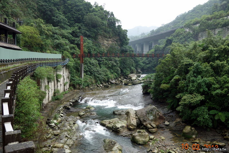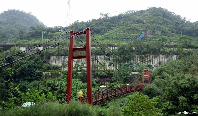 因為天候不佳,只走過吊橋到對岸的涼亭休憩,欣賞四周的綠意。