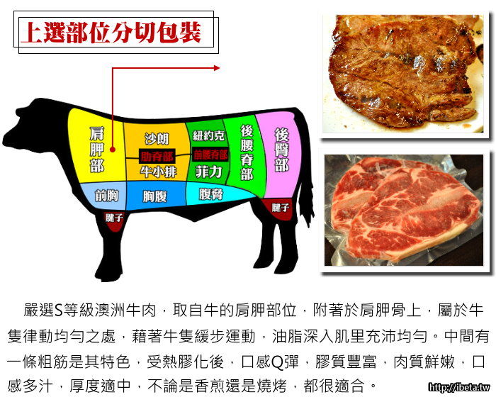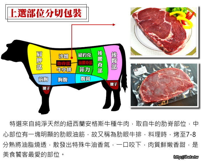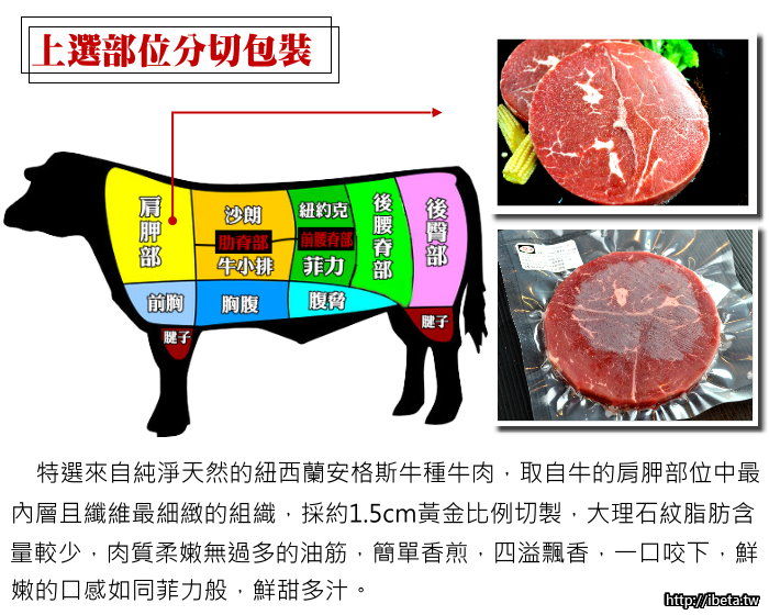 來自純淨天然的紐西蘭安格斯牛種牛肉,肉質鮮嫩香甜,是美食饕客最愛的部位。