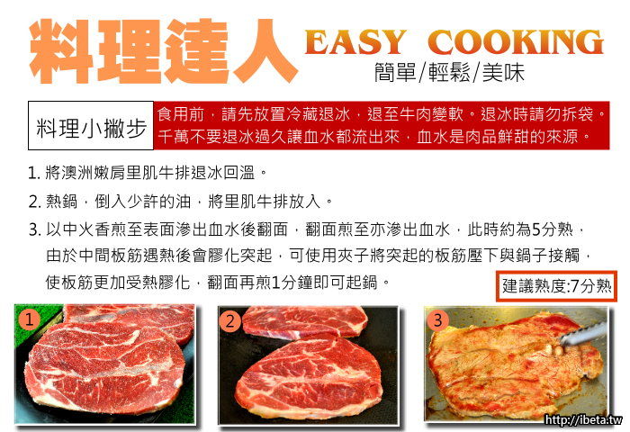澳洲頂級嫩肩里肌牛排(200g±5%;2-3片/包) 原價$299 $80