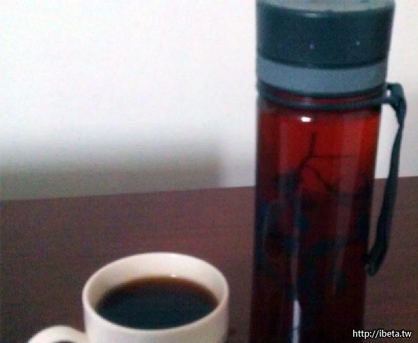 我最大的隨身杯只能裝600c.c.(如下圖),剩下的紅茶則都放入冰箱冰鎮了!