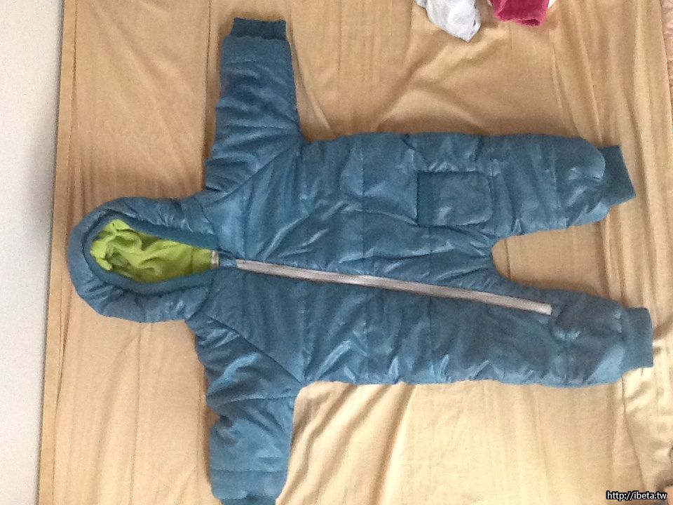 2。防風、保暖、連帽連身衣(綠色、95cm)--200元。已售出!