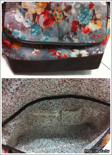 開口為磁叩無拉鍊,內裡是可愛小花,容量大