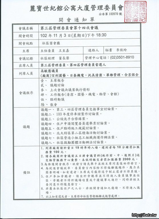 第三屆管委會第十四次會議通知