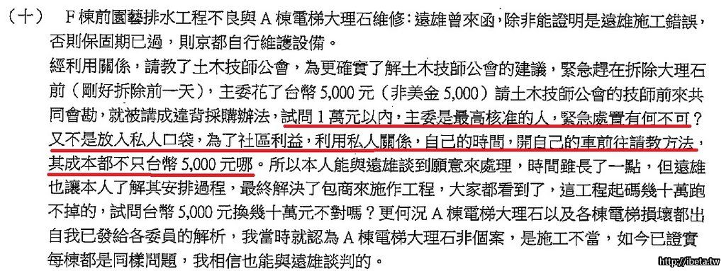 個人認為: 林前主委上面紅字那一段的確是有理,為了社區想辦法的付出,盡力奔走,只因程序不符,就這樣被框住,實在太僵化,也抹滅他的用心