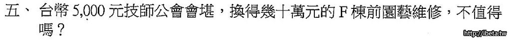F棟前面園藝那個問題,是因為花5000元土木技師走一趟,然後給個估價單,這樣遠雄就同意維修?