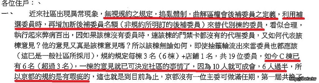其實林前主委是受到很多委員的強烈支持的,看這次集體辭職就明白! 除了含林前主委共七位之外,還有兩位,所有總共9位,常一起出遊,吃飯,聚會甚至也常到林前主委的家中聚會..........雖不是同一棟的,住戶可以這樣和睦同居,何等美善 ! 同不同一棟,實在並未有啥大問題! 畢竟都是京都的住戶!