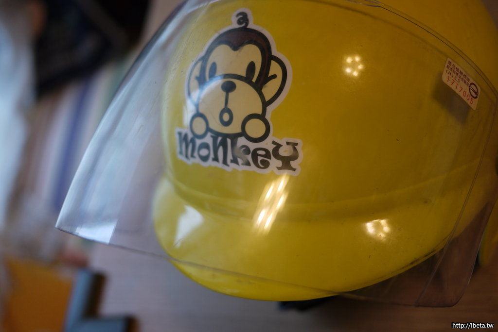 正牌的猴子,旁邊有標示頭圍50-54公分