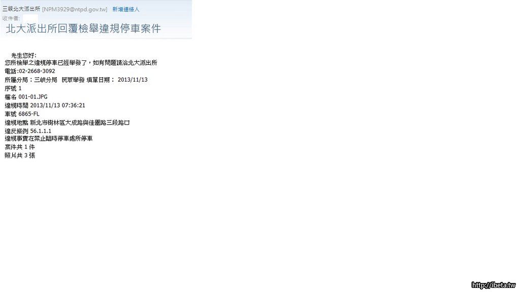 還有, 我今天會親自將照片送到警察局去檢舉, 並直到確定他們已開罰為止.