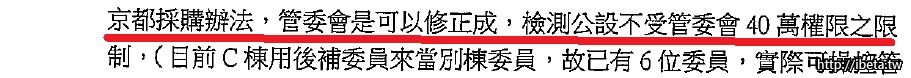 京都社區的採購辦法是前幾屆管委會為自我設限的財務花費所擬定的採購辦法,亦即只要社區採購超過40萬以上須交付區權大會表決.