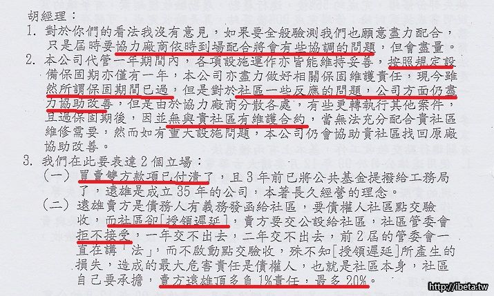 第二點 , 公設點交與否, 建商責任與社區的利弊得失