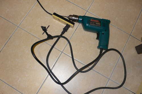 將3M背貼還有一點點黏性,用電鑽在中間鑽孔並鎖上鏍絲
