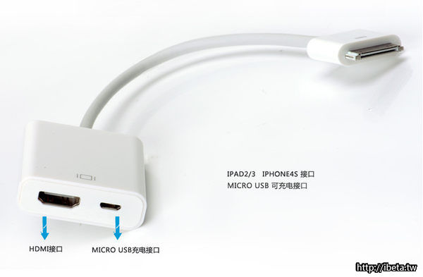 白色線為:蘋果ipad2/3 to HDMIi轉接線iphone4 4S HDMI接高清電視 同步充電(micro USB 充電口)