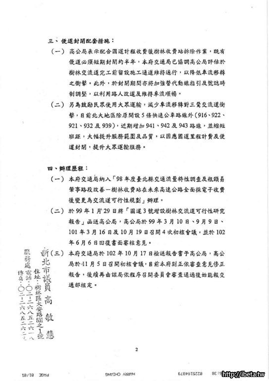 第四屆周委員提問:新北市政府針對樹林收費站便道封閉後,可能造成嚴重堵塞之因應。