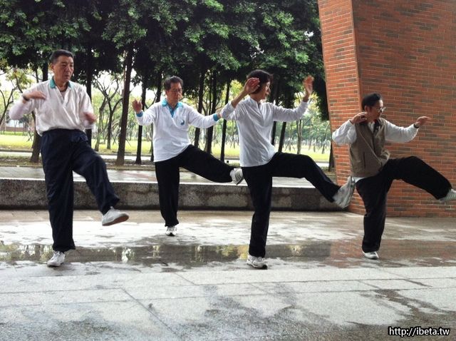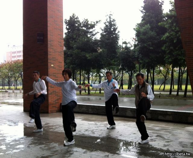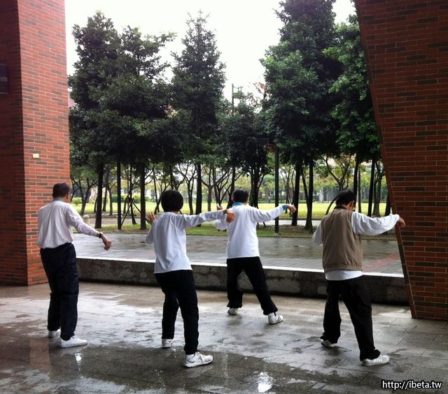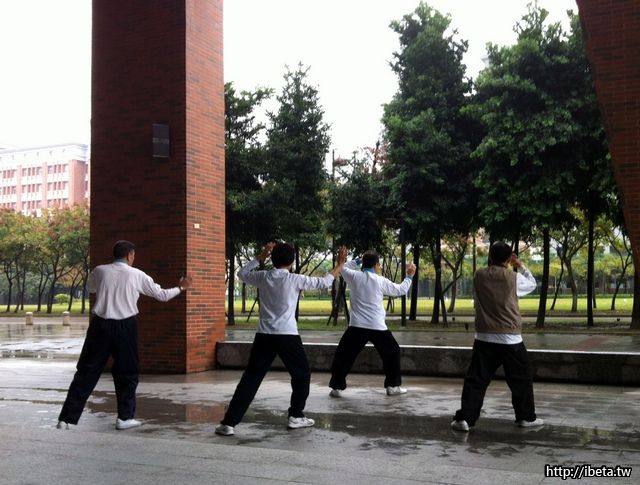 動作雖然不是很標準,但是在陰雨的清晨以太極拳迎接新的一天,人生充滿了希望。