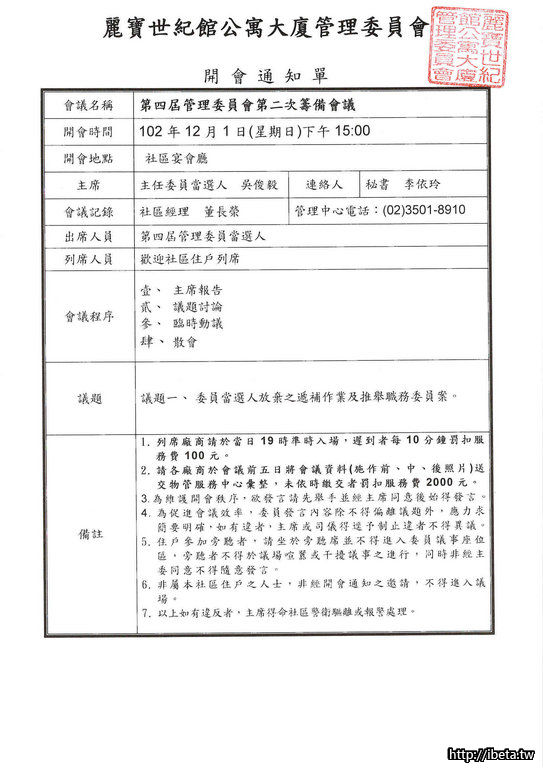 第四屆管委會第二次籌備會議通知