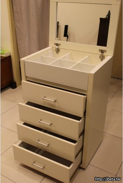 五斗櫃 - 【第一層 - 六格置物空間 + 上掀式鏡子一面 】