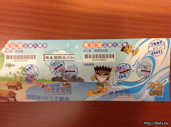 贈送(馬拉灣)麗寶探索樂園門票一張