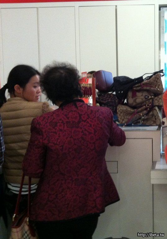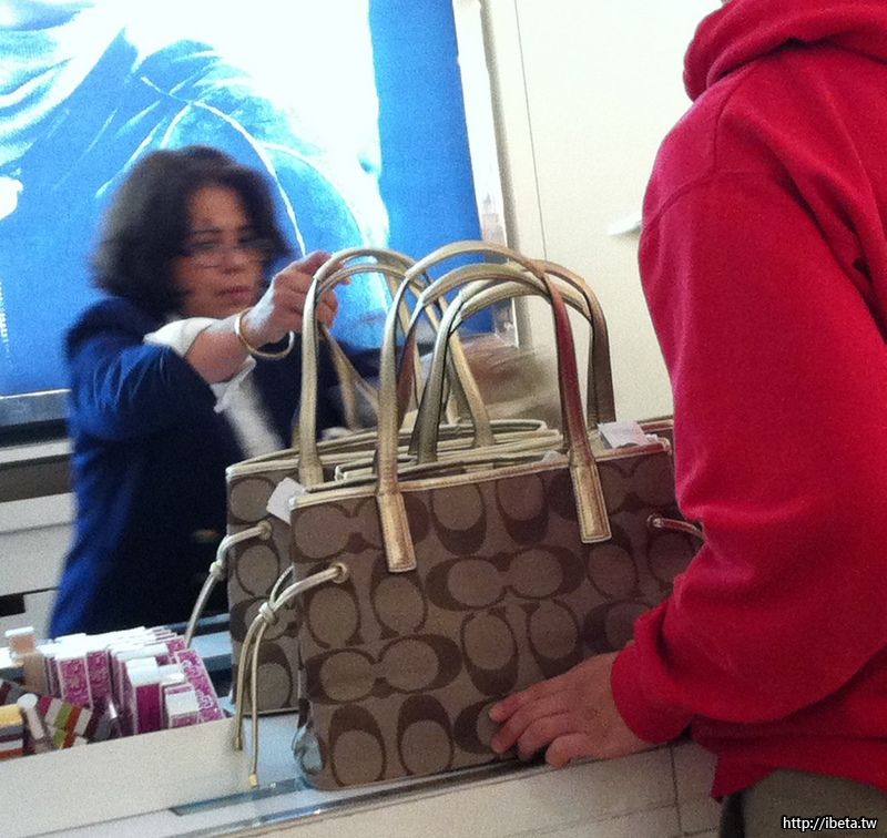 剛好把今天在 outlet 看到的場景 po 上來,對我來說是頭一遭親眼看見的奇觀。這三個顧客全是東方人,購買力之強保證讓人大開眼界。第三張照片穿紅色衣服的男顧客是用全新的百元現金付賬。