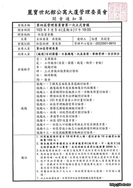 公告第四屆管委會第一次正式會議通知