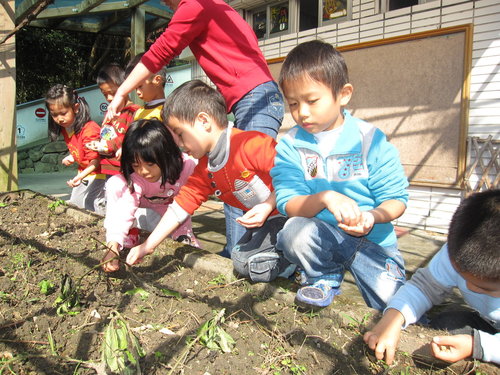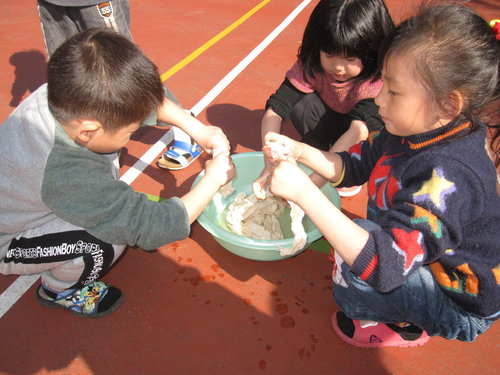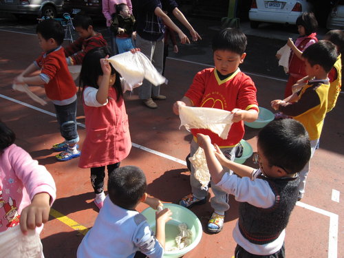環保概念~我們請小朋友將豆渣鋪放在我們重大菁職務的根部~算是給植物養分