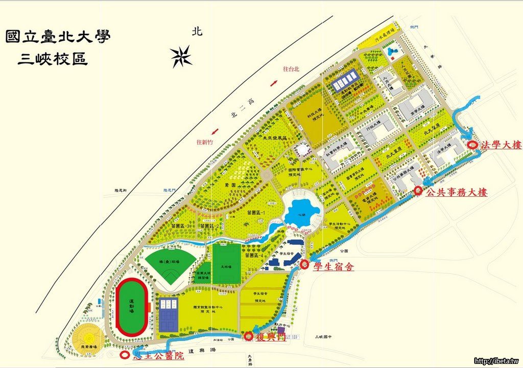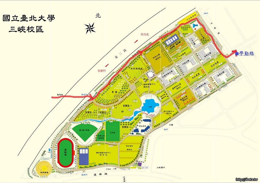 從學勤路直行進入台北大學正門