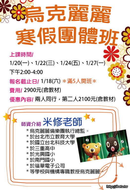 寒假密集班只有4堂課,一次2小時~小二以上至成人都可報名喔!!