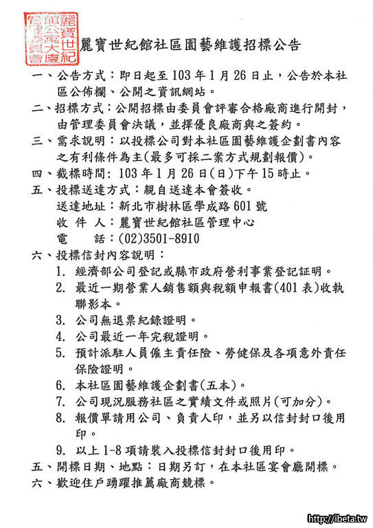 103年社區園藝維護招商公告