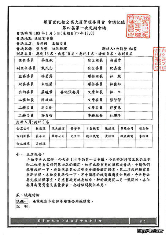 第四屆管委會第1次定期會議紀錄
