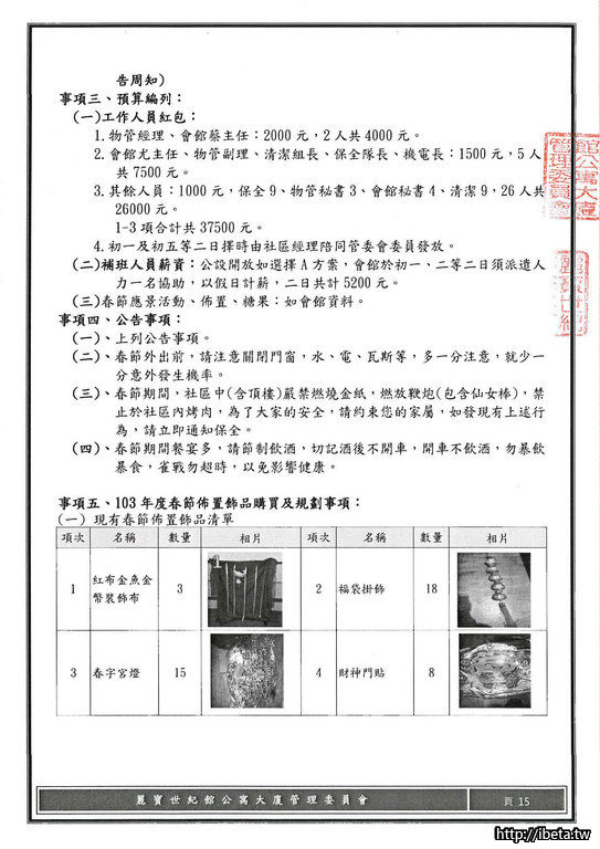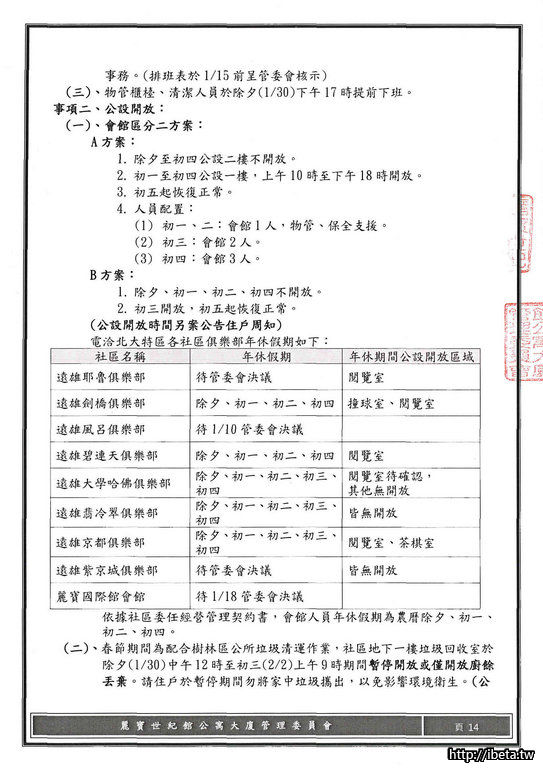 您所看到的資料皆是會館初步規劃的,舉辦方式、收費方式及時間皆須管委會討論通過後才會實施,