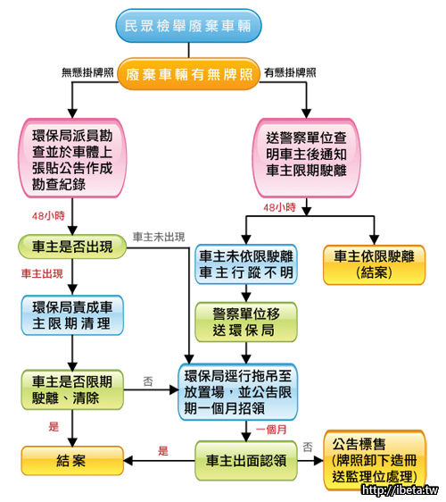 ※廢棄車輛再請環保局拖走、貼公告前,最好是社區內先公告後,再請環保局處理,並拍照,以免爭議。