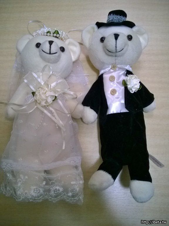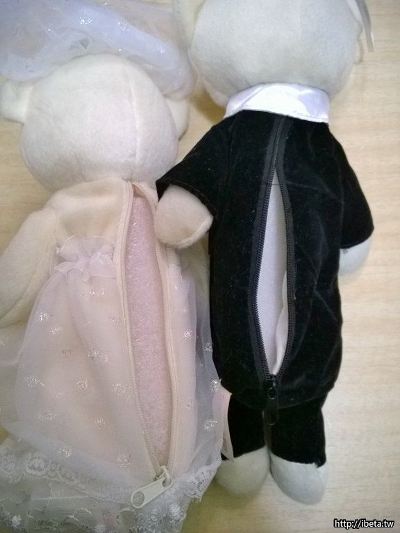 [未使用過] 婚紗熊布偶一對 (可當筆袋)