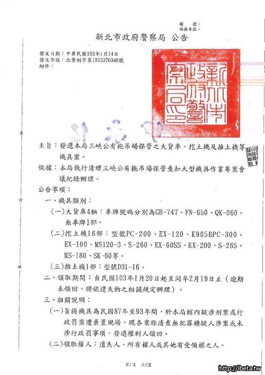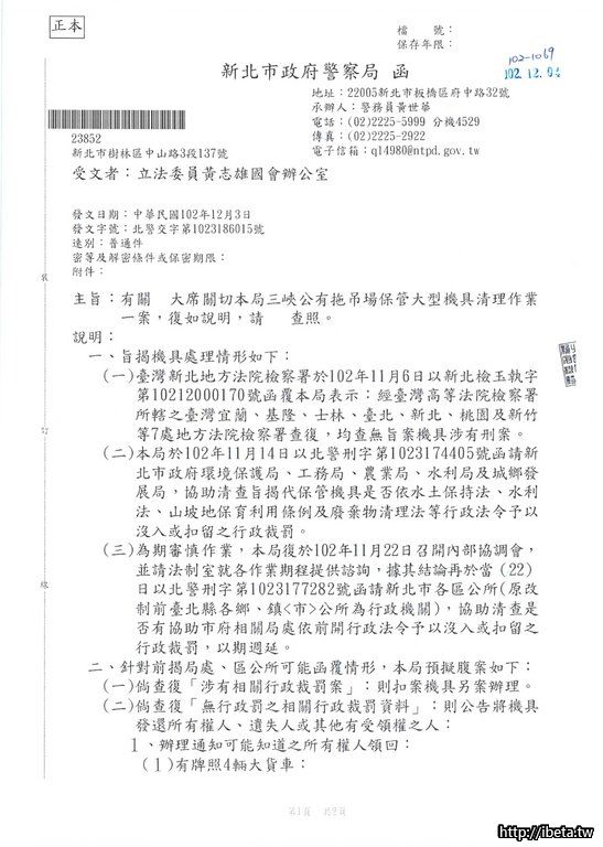 謝謝您.上次人行道案件時.與拖吊場陳主任.就曾就大型機具案.做過協調處理.