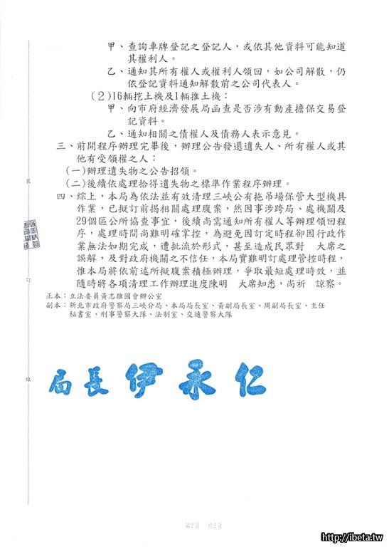因此三峽拖吊場大型機具清除作業在志雄與佳君的監督下,目前正積極辦理中,預計今年底前可順利完成大型機具之移除,未來三峽拖吊場也不再是贓車、事故車集中場。