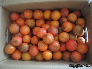 不灑農藥甜滋滋-外皮看似被火燒傷一般稱之為火燒柑.因陽光直射而失去原有美麗的橘黃外表果皮.但當它成熟時內在的甜度及風味依舊.
