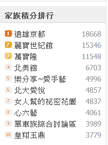 家族積分進入前十名