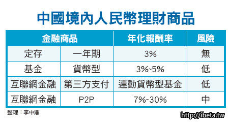 中國互聯網金融興起,銀行業務遭到蠶食,打著高報酬率的旗幟,年化報酬率比銀行定存平均高3~5%,甚至更高。中國互聯網金融的發展趨勢,值得台灣政府及金融機構借鏡。