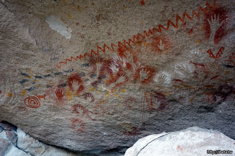 據考古學家考證,這些洞穴手印已有 9000 年歷史,顏色還很鮮豔。除了手印外,還繪畫了地形和狩獵。1999 年列入聯合國 UNESCO。