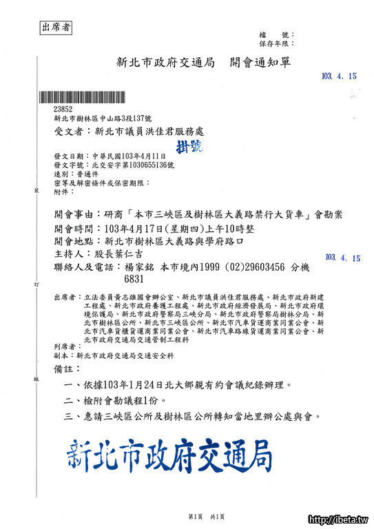 hswei.tw 發表於 2014-4-22 21:11 請疏導大貨車走外圍道路,切莫因三鶯二橋貫穿北大特區, 造成寧靜北大特區處於喧囂危險車陣中