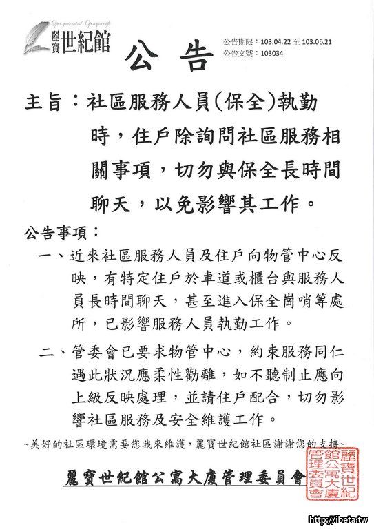 公告(安全)103034切勿與服務人員長時間聊天以免影響工作