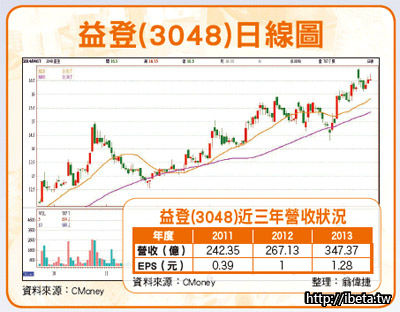 益登(3048)則為專業代理網路通訊晶片,去年年底同樣受惠提前拉貨潮以及大陸4G釋照結果底定的影響,也讓去年第四季的財報維持在營運高水平的表現。