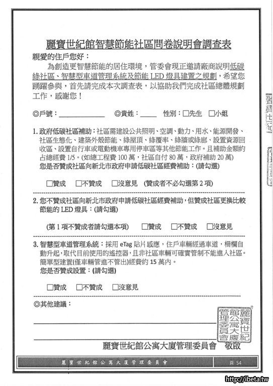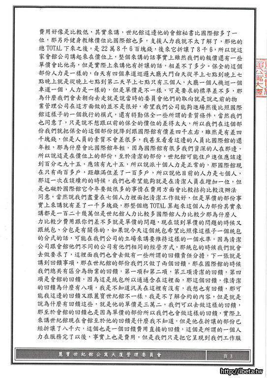 還請管委會在管理費的運用上做個通盤考量....
