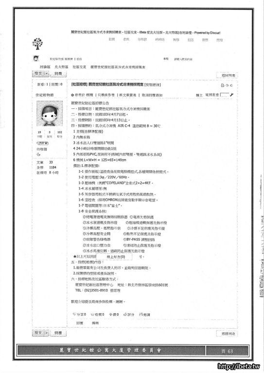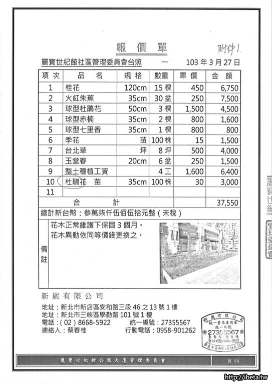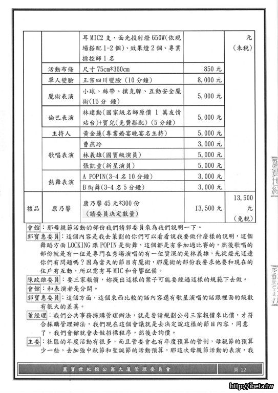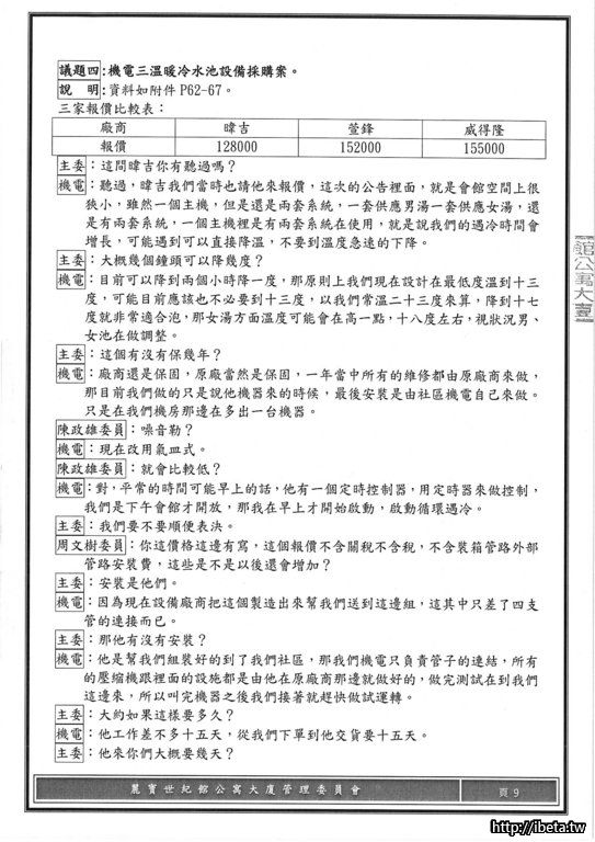 但我需要管委會提供SPA每月消耗費用(含電費與耗材費等).....
