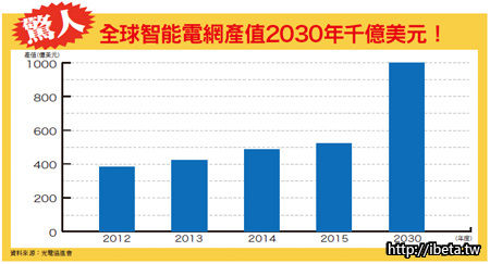 歐巴馬之後,各國皆大力發展智能電網。國內政府推動「智慧型電錶基礎建設」標竿計畫,研究機構拓墣預計,明(2015)年推行智能電錶擴及一般用戶,預估可創造台幣三百八十億元產值。