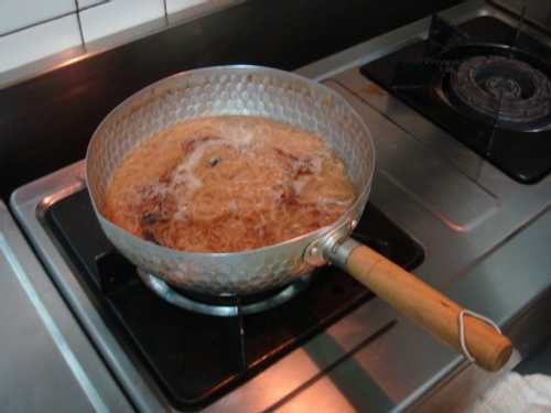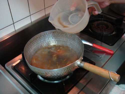 4. 倒入約600cc的水,並以小火烹煮至水沸