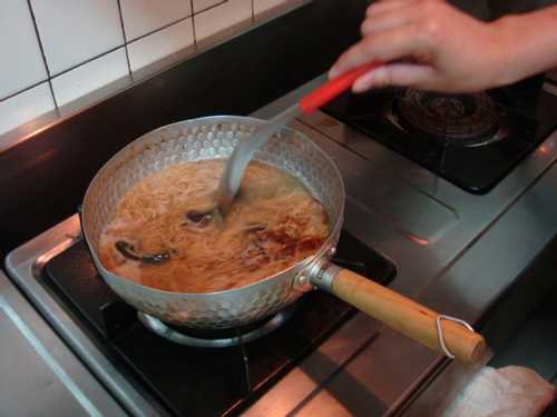 先熱鍋,再倒入適當的麻油,此時將會有濃郁的香味產生