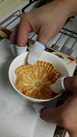 把剛烤好的煎餅放在碗上(不是碗公喔!)
