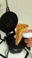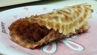 甜桶也是如此,在熱熱的煎餅剛出爐,就可以趕緊捲曲